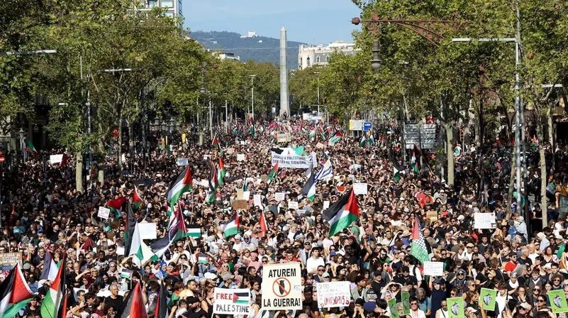 70 ألف متظاهر في برشلونة يطالبون بوقف تجارة السلاح مع إسرائيل