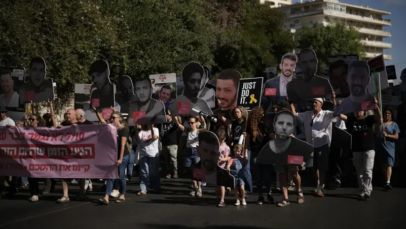وقفة احتجاجية لأهالي الأسرى في تل أبيب مطلع الأسبوع (AP)