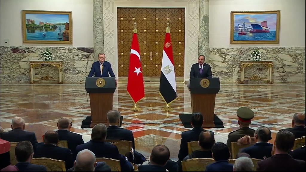 وكالات – أصدرت مصر وتركيا بيانا مشتركا في ختام الاجتماع الثاني لمجلس التعاون الاستراتيجي رفيع المستوى بالقاهرة عقب مباحثات رسمية جمعت الرئيس عبد الفتاح السيسي والرئيس رجب طيب أردوغان تناولت العلاقات الثنائية والقضايا الإقليمية ذات الاهتمام المشترك.
