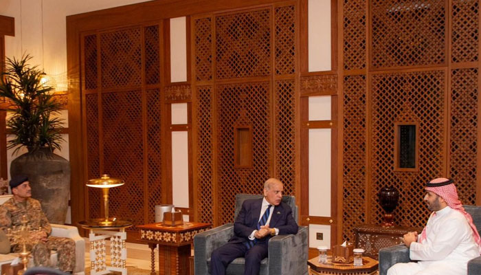 وشارك في الزيارة قائد الجيش الباكستاني سيد عاصم منير ونائب رئيس الوزراء ووزير الخارجية إسحاق دار حيث عقد الوفد الباكستاني مباحثات مع ولي العهد السعودي محمد بن سلمان حول تطورات الأوضاع في الشرق الأوسط وسبل التعامل مع التوترات المتصاعدة.